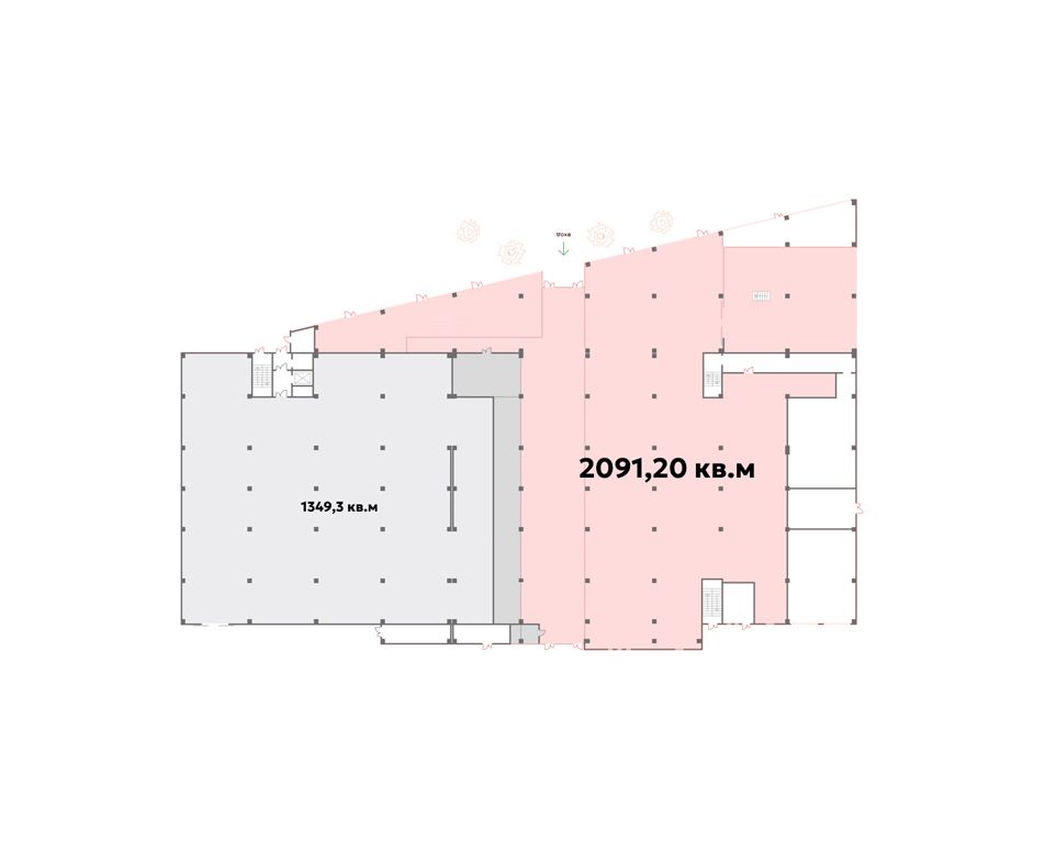2091,2 кв.м. Высота: 3,45. Выделенная мощность электроэнергии - 260кВт.