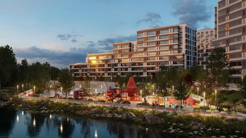 В соответствии с концепцией проекта на прилегающей к жилым домам территории запланирована организация общественных пространств, учитывающих потребности всех социальных групп. Здесь появятся зоны отдыха для детей и взрослых, набережная с плейхабом, спортивный кластер, сеть прогулочных и велосипедных дорожек. Просторная лесопарковая зона создает гармоничное окружение, а частичное ограждение территории и контроль доступа обеспечивают безопасность и спокойствие жильцов. Для владельцев питомцев предусмотрена площадка для выгула собак с навесами и разнообразными тренажерами.